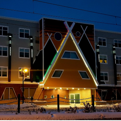 Meaning "Good New Home" in Ojibwe, Mino Oski Ain Dah Yung is a 42-unit permanent supportive housing project for American Indian youth ages 18 to 24. Opened in November 2019, Mino Oski Ain Dah Yung offers young adults who have experienced homelessness their own efficiency apartment with a complete suite of culturally responsive on-site services.